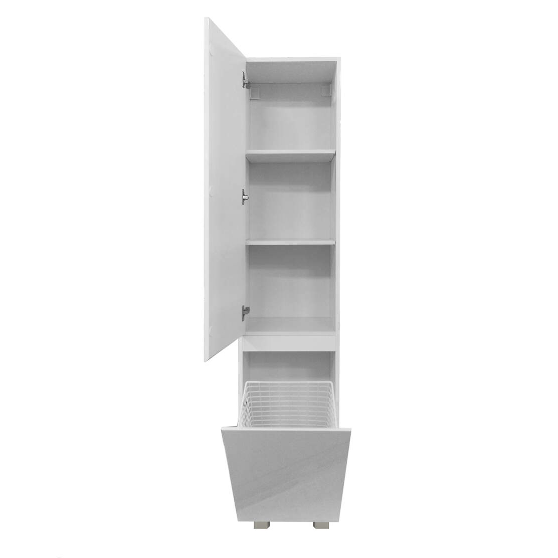 Описаниешкаф-пенал левосторонний разделяется на 2 зоны. В верхней части шкаф-пенала расположено большое отделение с тремя полками с распашной дверцей, снизу отделение с бельевой корзиной