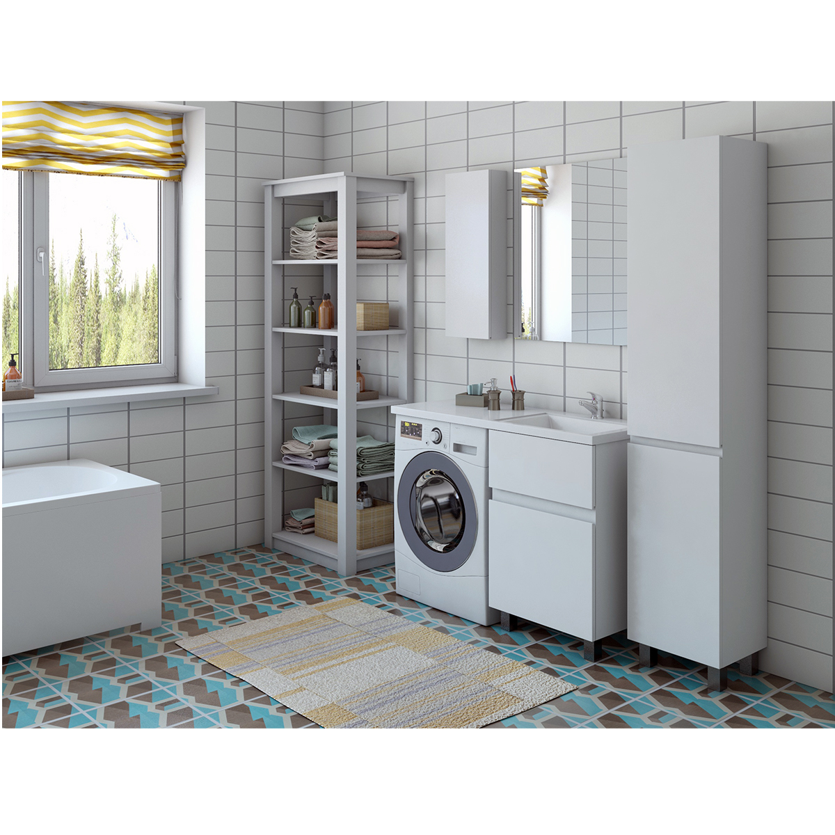 Дополнительно можно подобрать: тумба с раковиной, шкаф, зеркало, светильник.