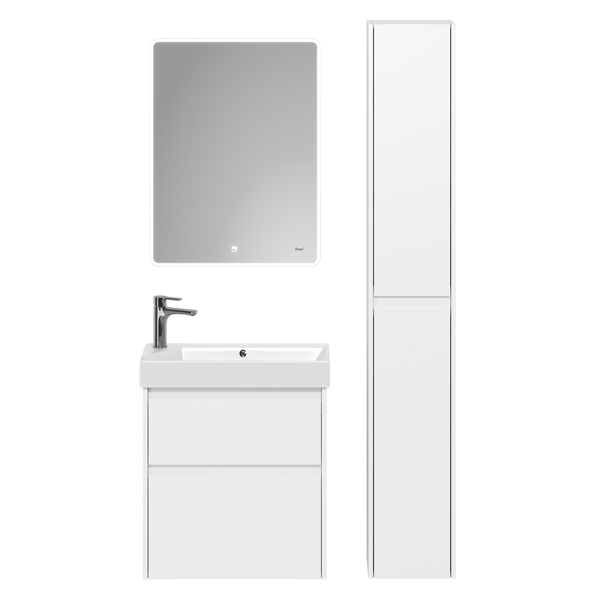 Тумба подвесная Dreja Slim 55x33 с раковиной Slim Synergy 55, 2 ящика, белый глянец