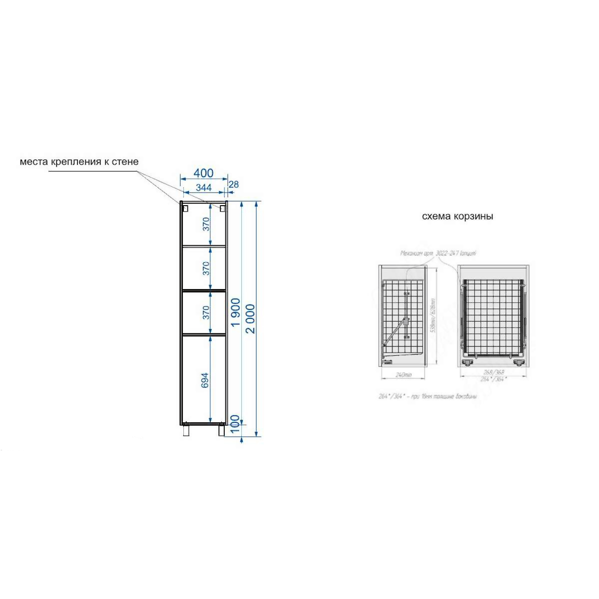 Ширина, мм 400 Глубина, мм 340 Высота, мм 2000 Материал и конструкция