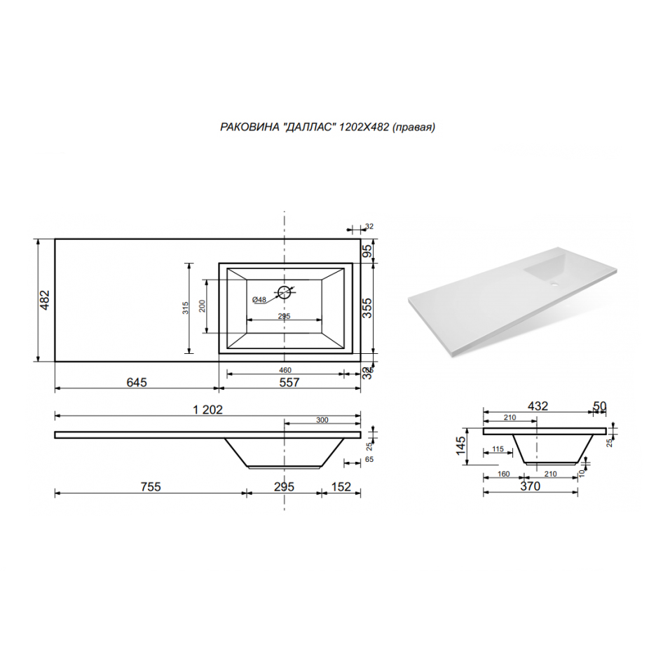 Ширина, мм 1200 Глубина, мм 476 Высота, мм 860 Размер тумбы (ШxГxВ), мм 548х476х860 Размер раковины (ШxГxВ), мм 1202х482x145 Материал и конструкция