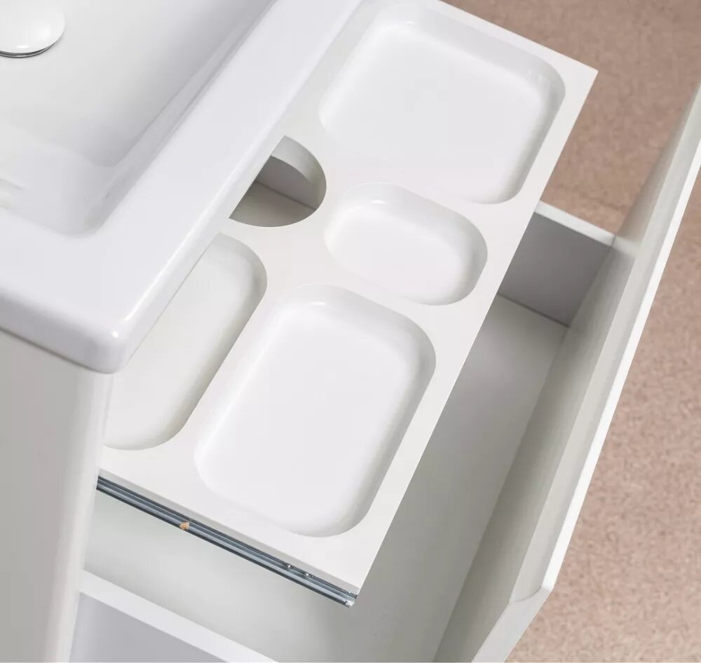 В тумбах устроены небольшие выдвижные поддоны-органайзеры. Поддон-органайзер для мелочей не занимает пространство ящика.