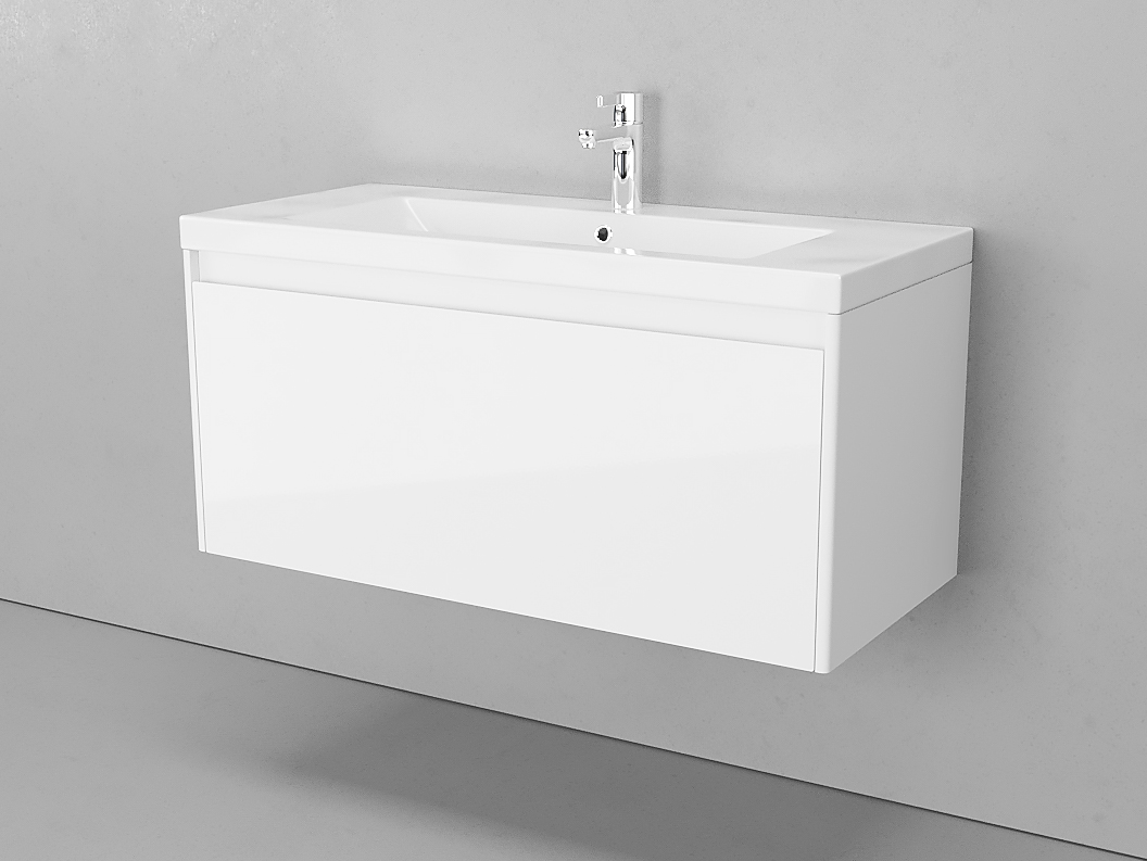 Тумба подвесная Velvex Klaufs 100.1Y.NEW с раковиной, белый