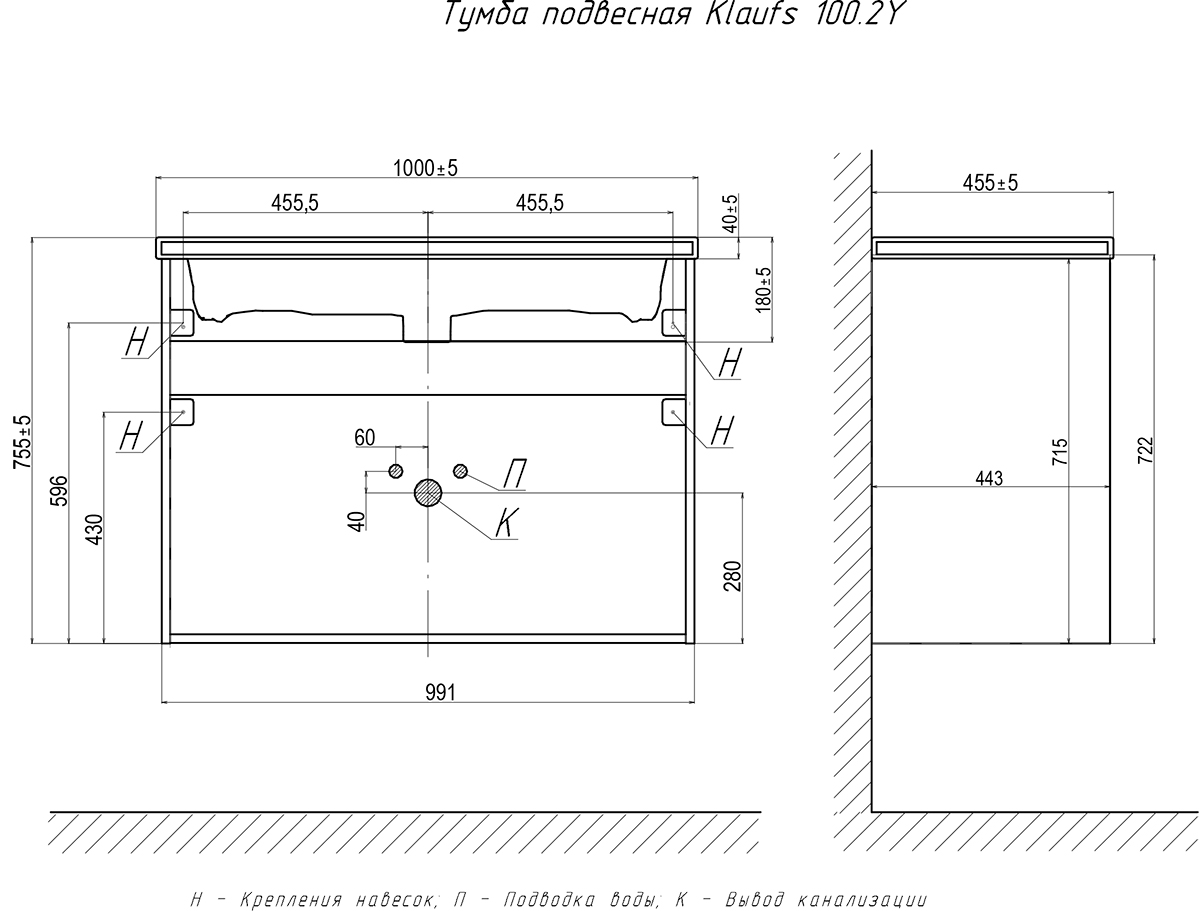 Тип товара тумба подвесная Артикул tpKLA.100.2Y.NEW-617.216 + rkMAR.100-81 Размеры