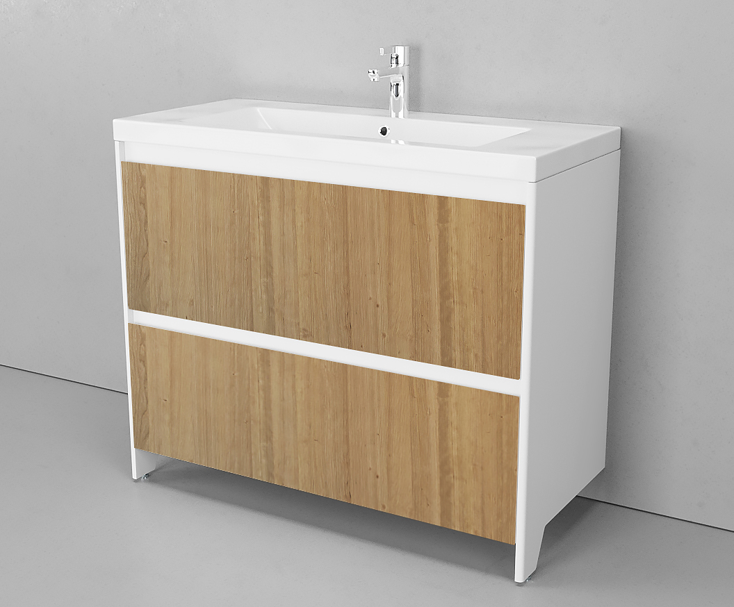 Тумба напольная Velvex Klaufs 100.2Y.NEW с раковиной, белый / светлое дерево (шатанэ)