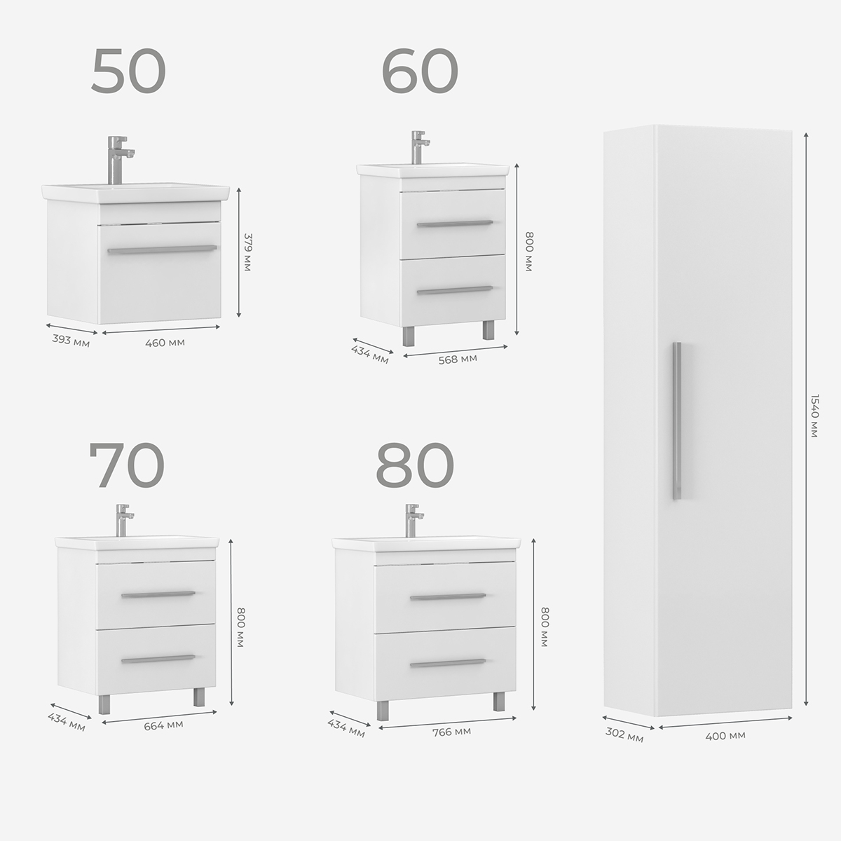 Материал раковины фарфор Материал фасада ЛМДФ Покрытие корпуса ламинат Покрытие фасада пленка ПВХ Материал корпуса ЛДСП Форма раковины прямоугольная Тип расположения универсальный Характеристики