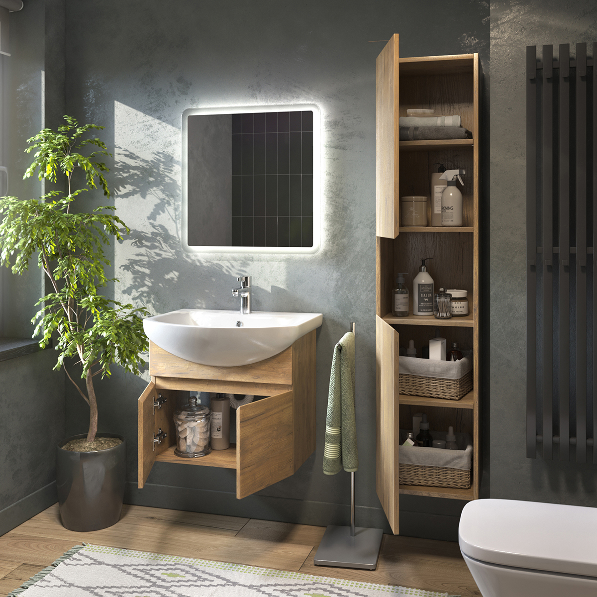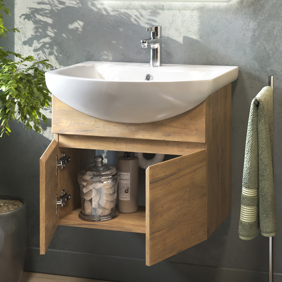 Тумба подвесная Vigo Wing 600-2-0 с раковиной Балтика 60, дуб золотой
