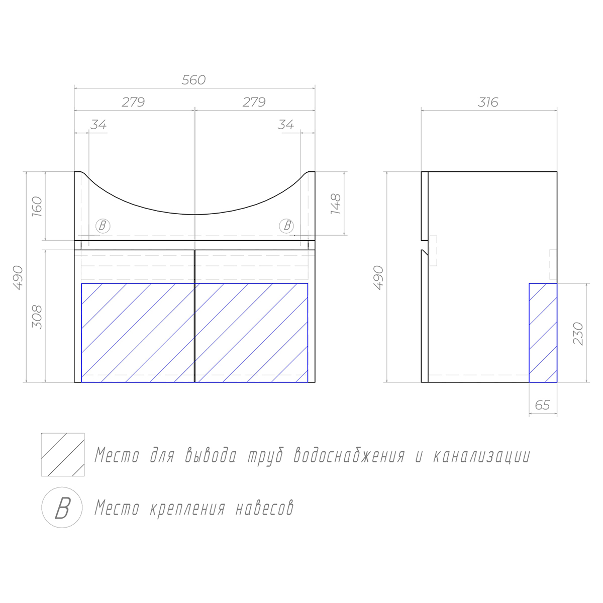 • Размер тумбы (ШxГxВ): 560x316x490 мм