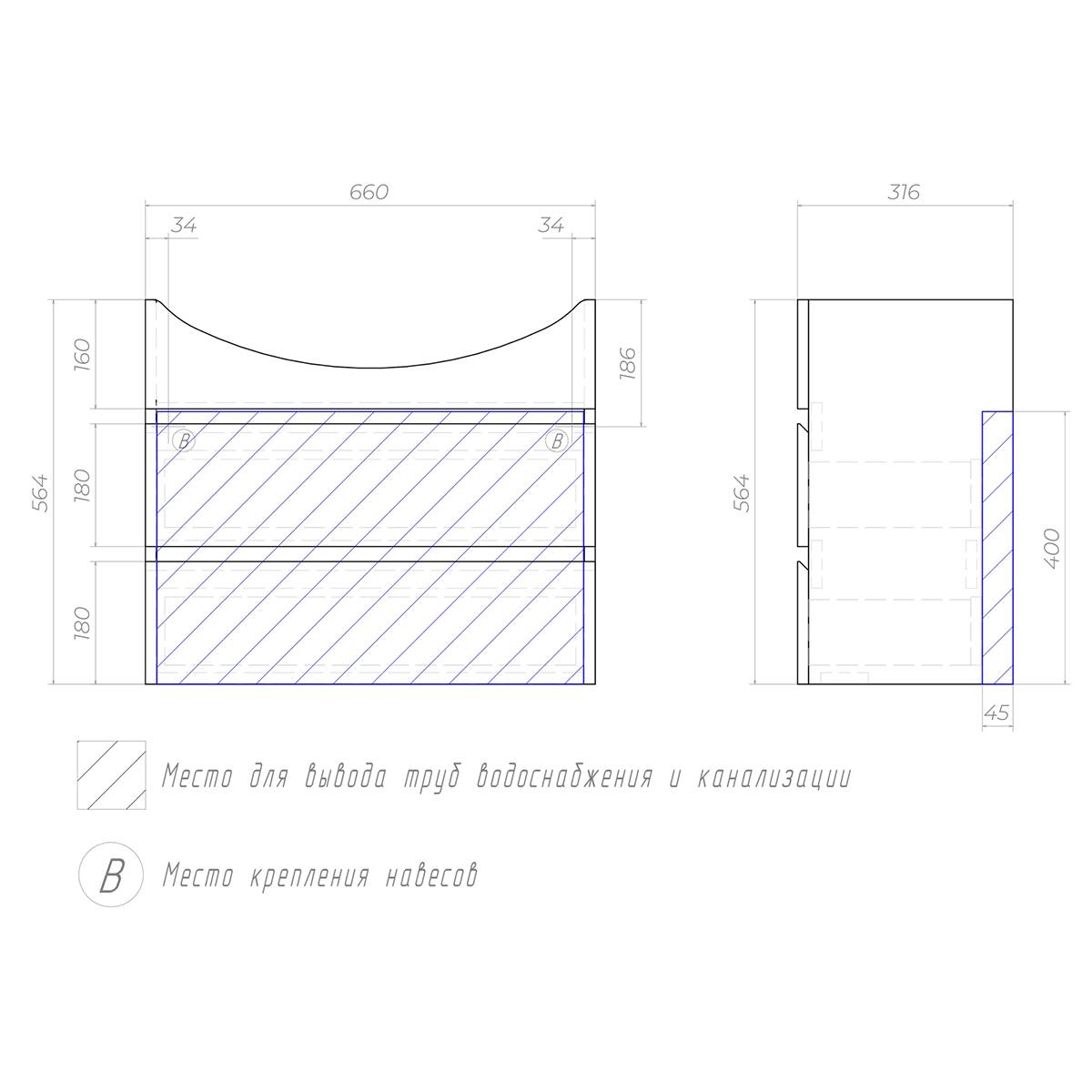 • Размер тумбы (ШxГxВ): 660x316x522 мм